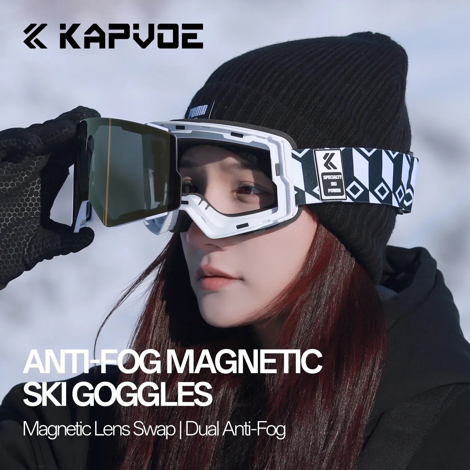 ⛷️Wider field of view and clear vision without fogging: KAPVOE magnetic ski goggles feature large cylindrical magnetic lenses that provide a 180° wider field of view and clear mirror images. The double lens design, UV400 protection and anti-fog coatings (inside and outside) ensure that your eyes are protected from harmful UV rays while skiing and you have a clear, fog-free vision.